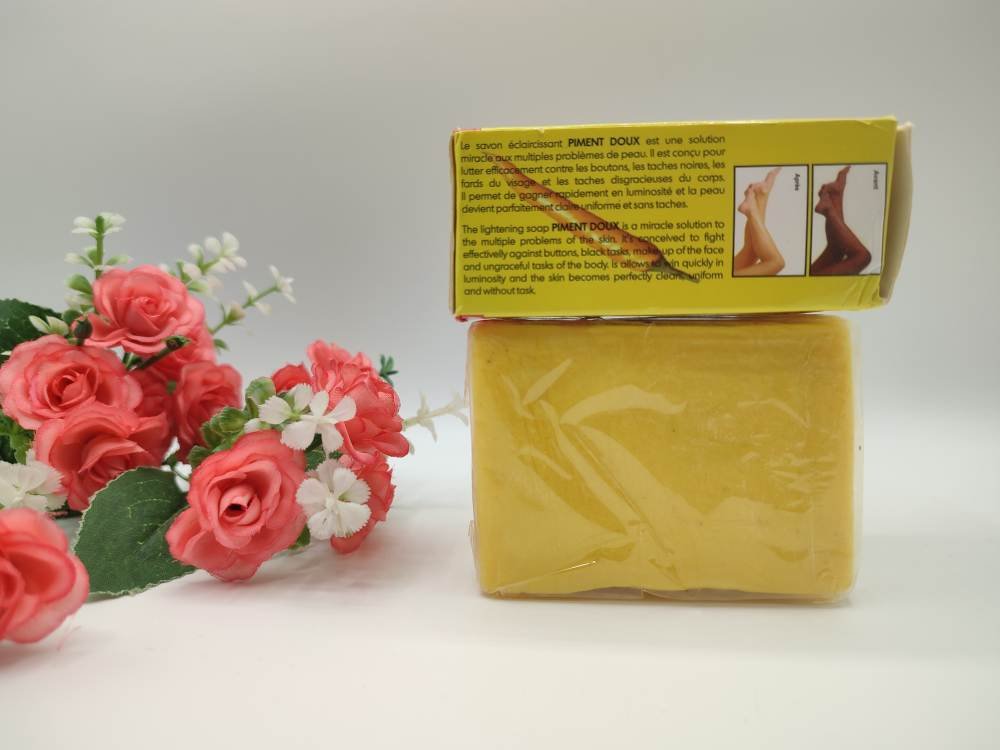 Découvrez le Savon Piment Doux Plus Exfoliant et Éclaircissant , un soin innovant spécialement formulé pour éclaircir, exfolier et revitaliser votre peau